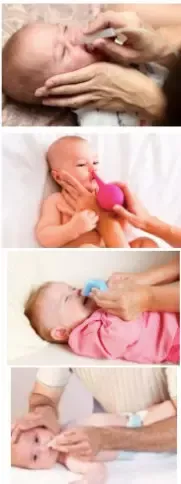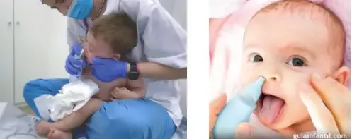 Si estás usando aspirador, como veis en la primera imagen, te recomendamos que evites su uso, ya que provoca graves irritaciones en las narinas (fosas nasales) de nuestros pequeños, pudiendo crear heridas. Además de ser frecuente los contagios en los padres y su uso no es más efectivo que otros medios de limpieza e higiene nasal: sprays, peras, jeringas...